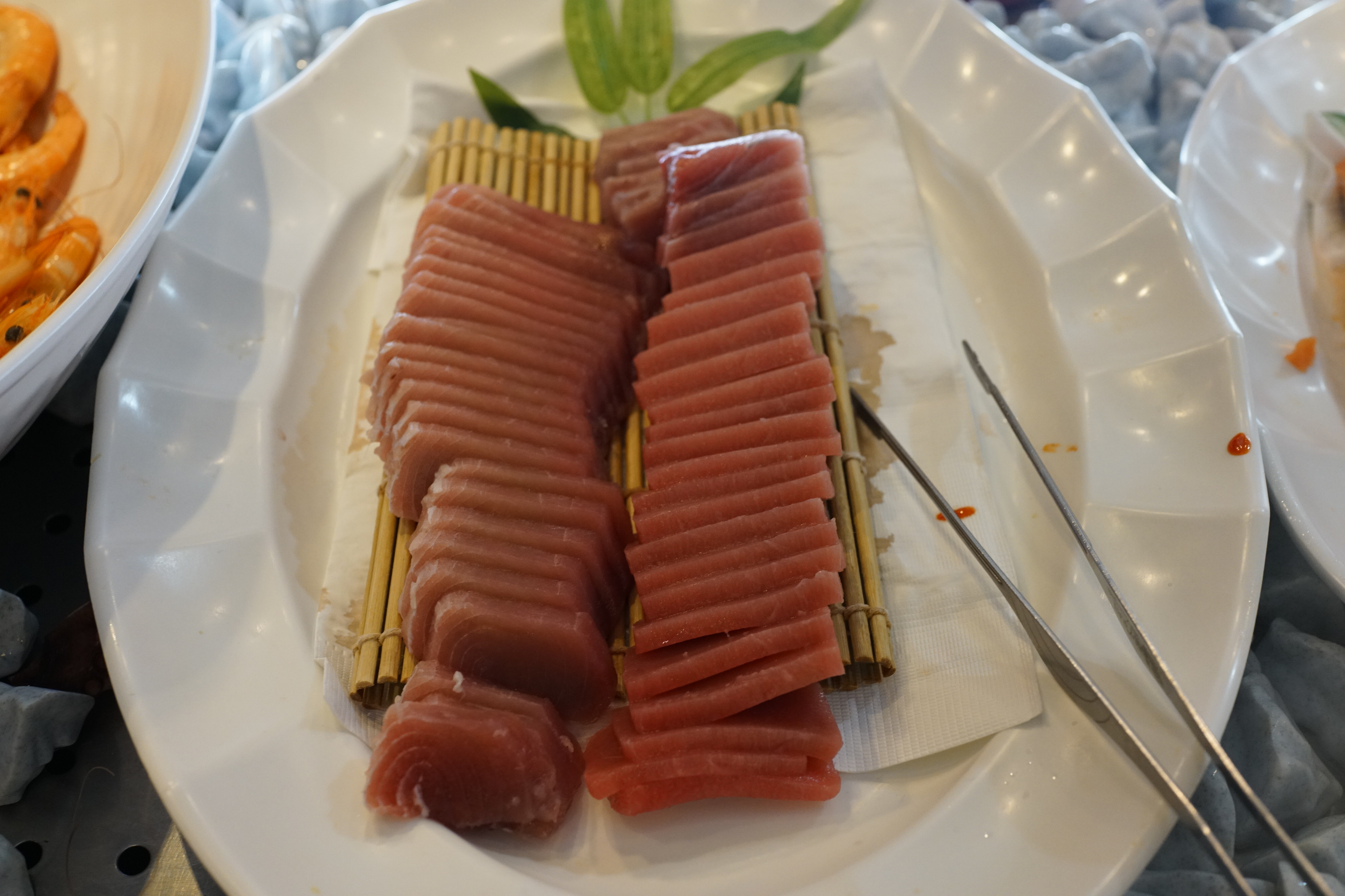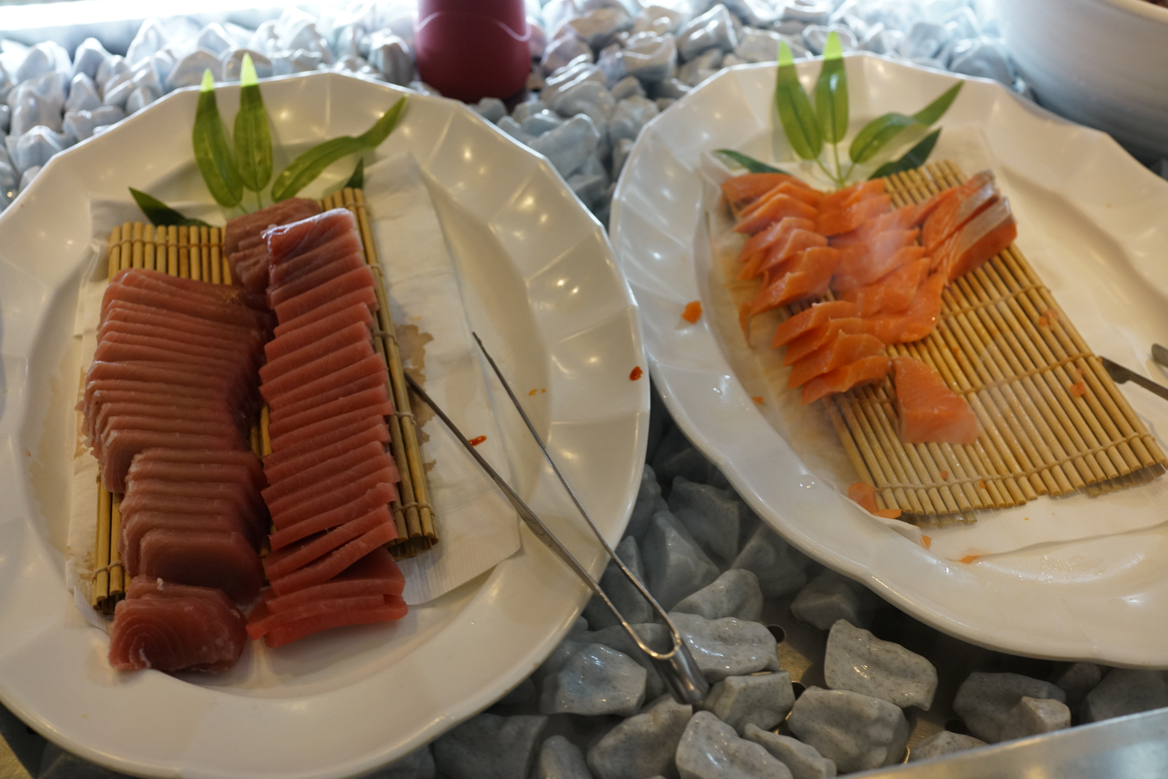 샐러드, 분식, 떡볶이, 초밥. 회까지 있었음.